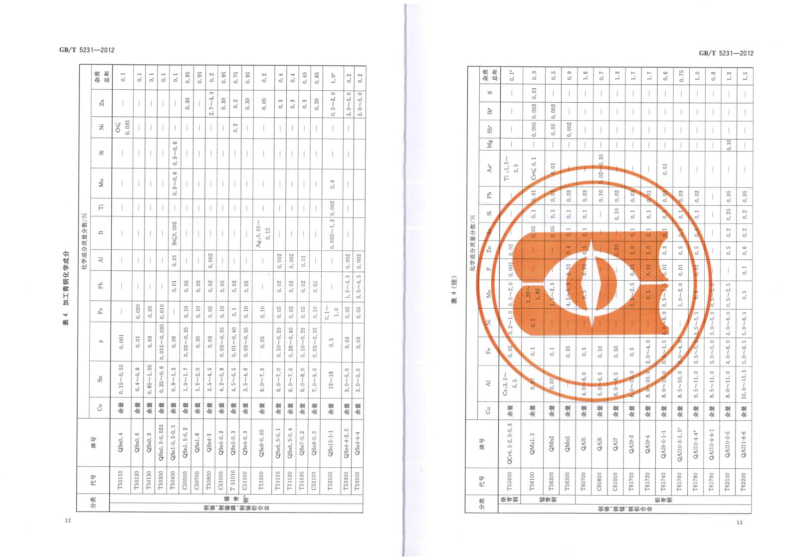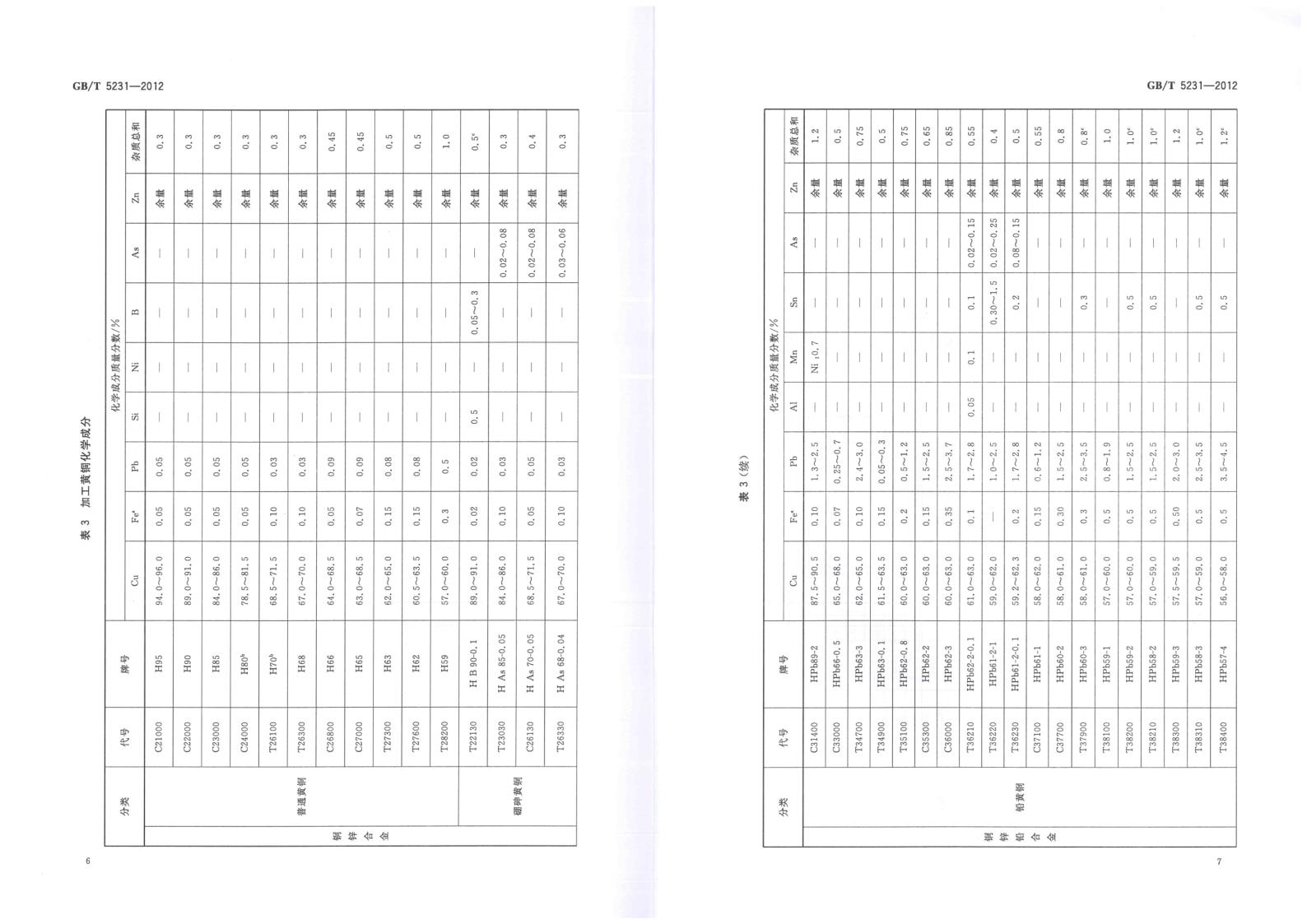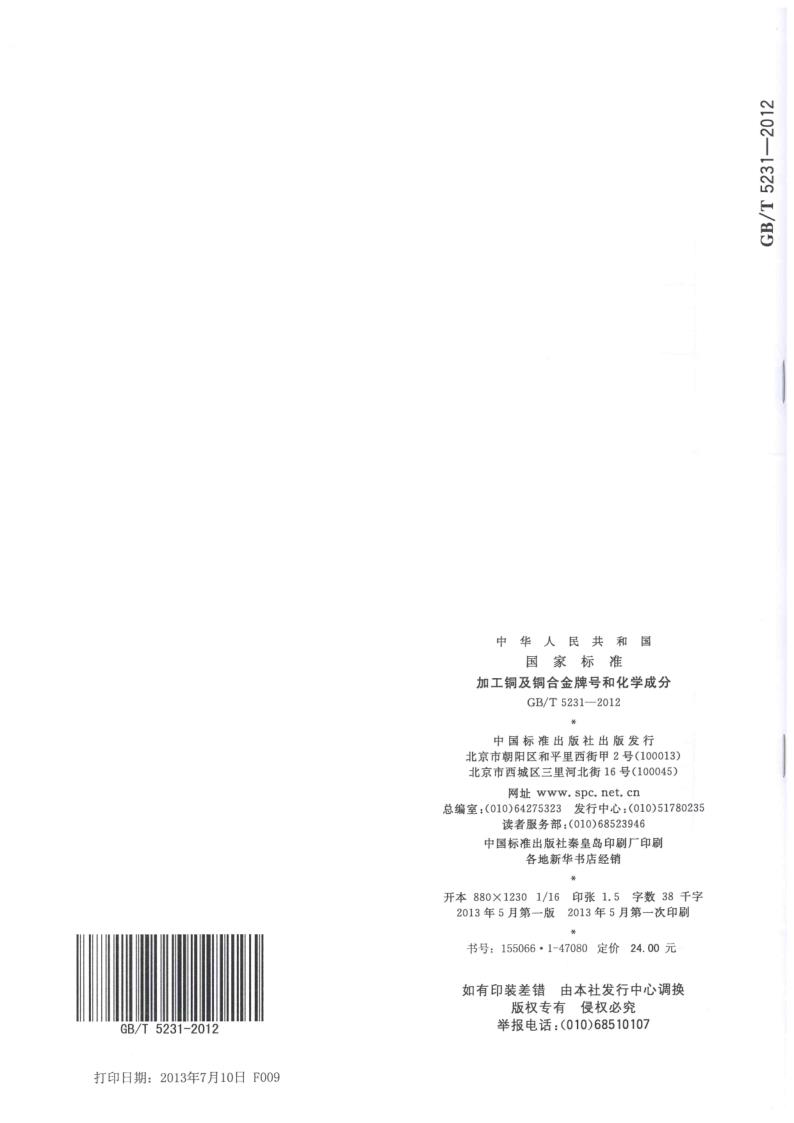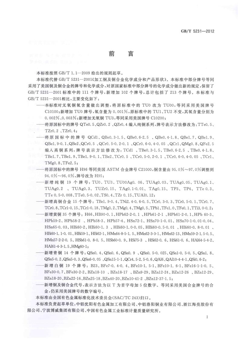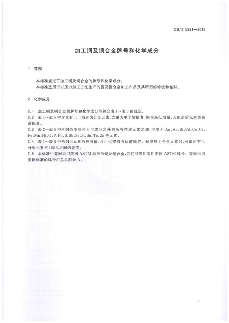 GBT 5231-2012 加工銅及銅合金牌號和化學(xué)成分