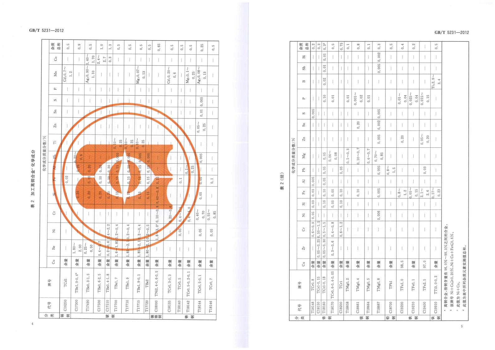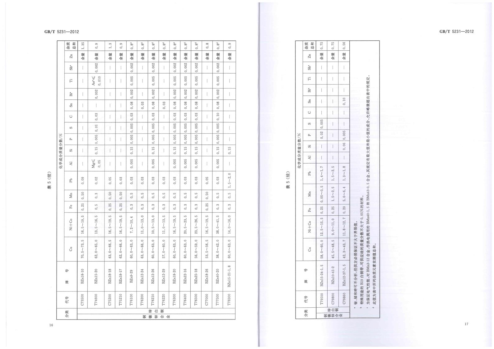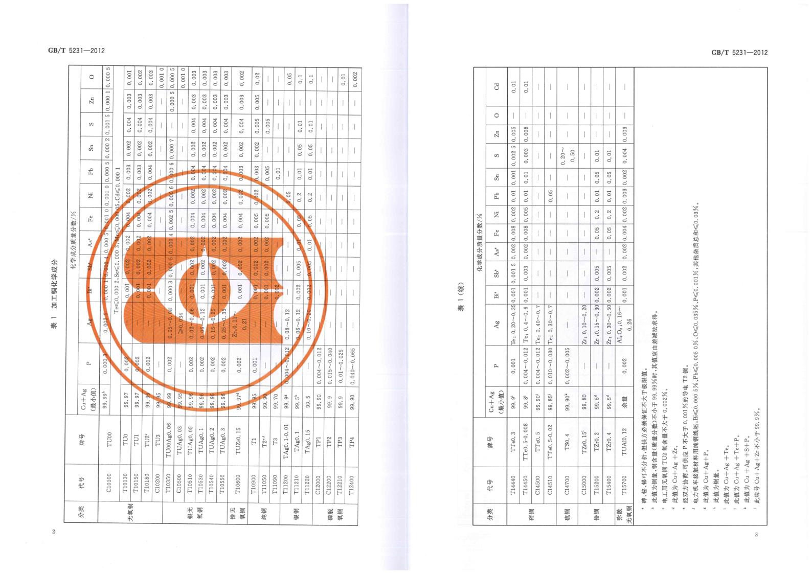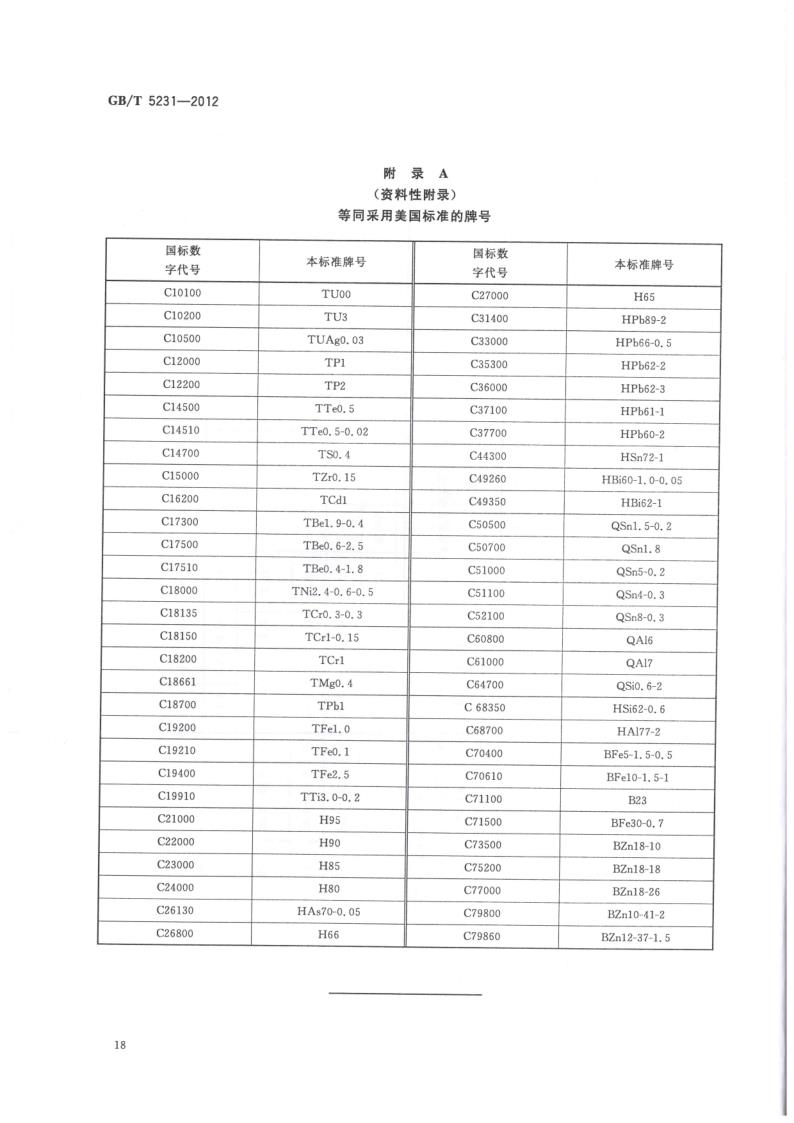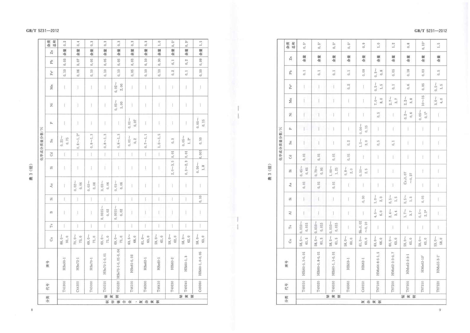 GBT 5231-2012 加工銅及銅合金牌號和化學(xué)成分